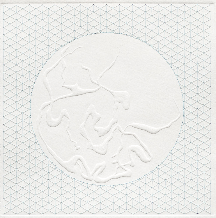 Untitled (polymatrix), blind embossing with stitching, 28×28.5cm, 2017